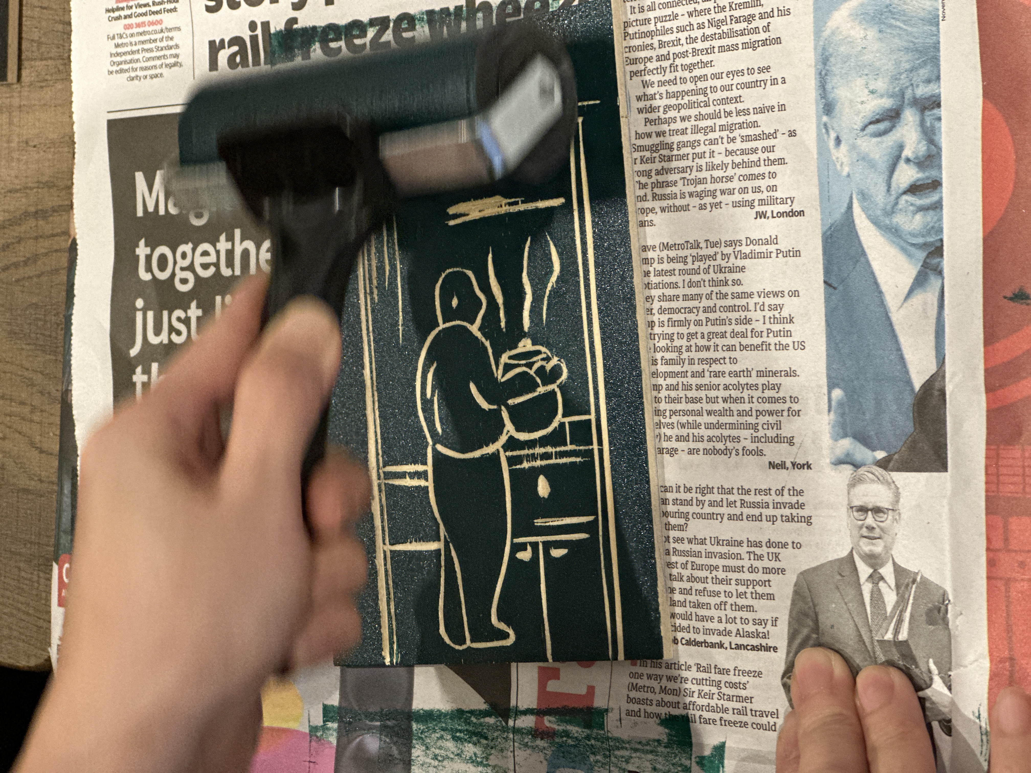 My approach has been shaped through ongoing collaboration with the printmaking collective Print&Carve Dept². Through exhibitions and workshops that address urban conditions, memory, and collective agency, printmaking gradually became more than a medium. It became a way of working together—one that supports shared authorship, dialogue, and collective reflection.