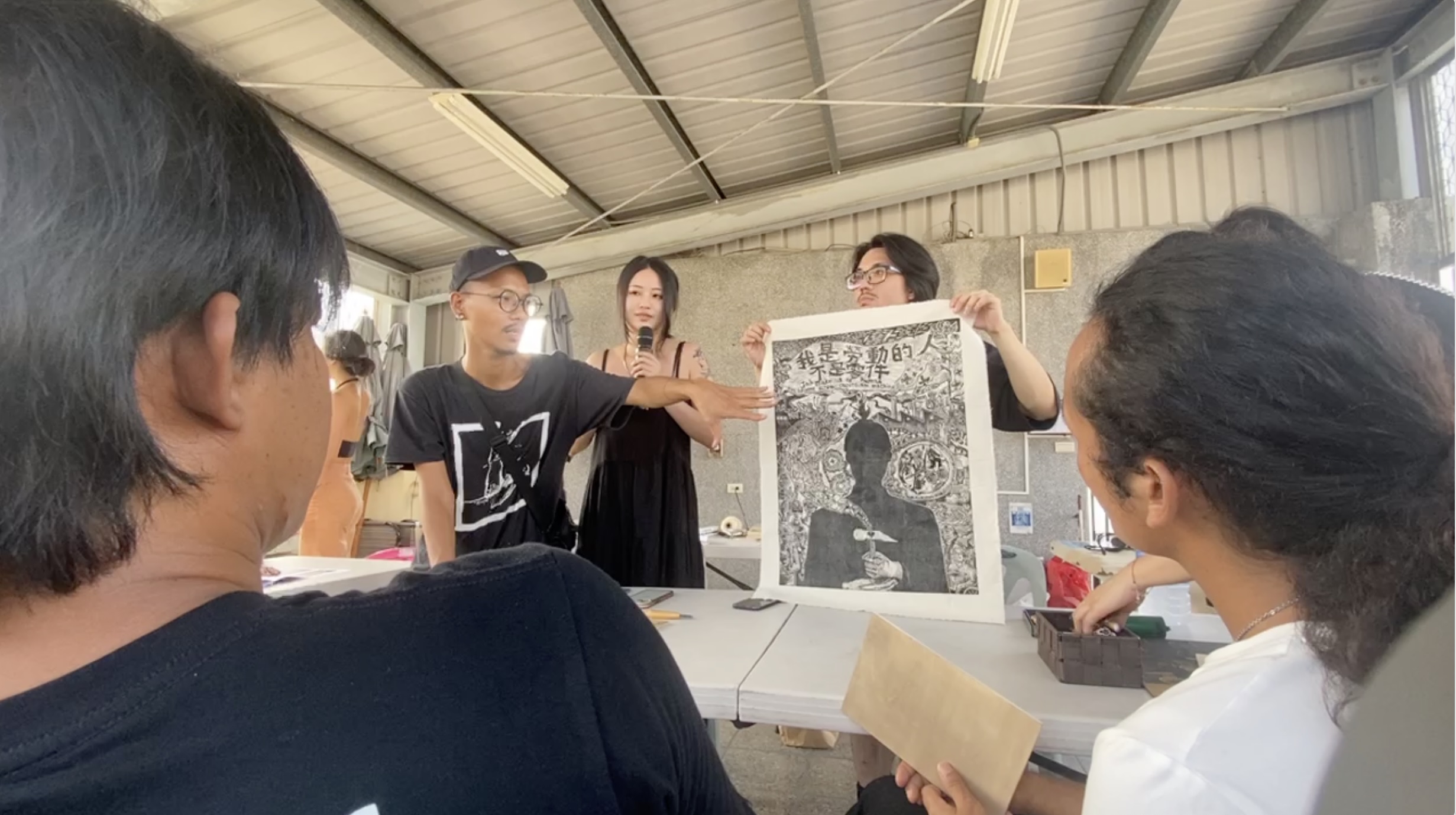 透過工作坊,印刻部分享了其過去的作品,並分享了版畫創作的技術,表達對跨國勞動權利的支持和政治理念,與跨國勞工合作進行版畫創作。