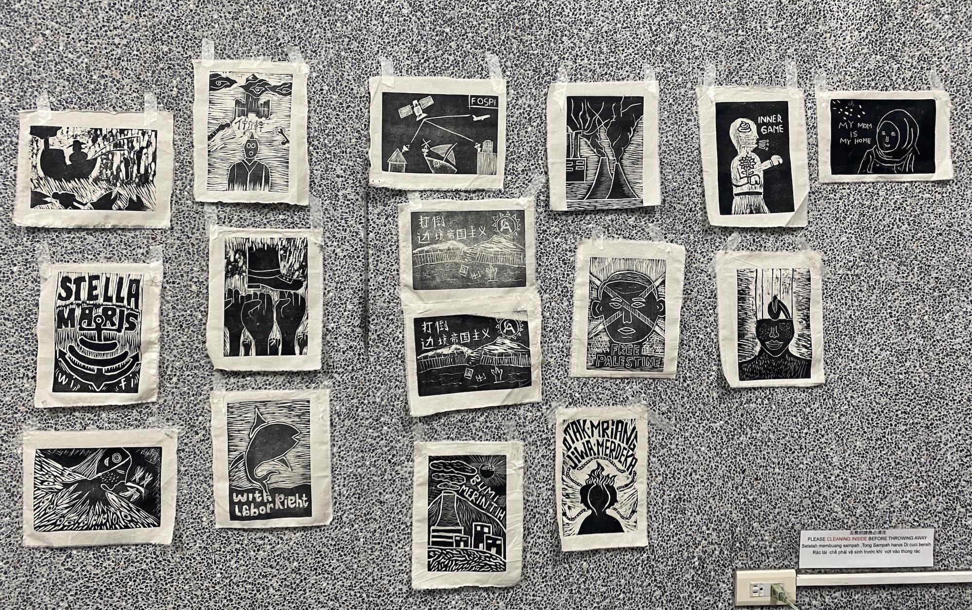After the workshop, upon learning that the foreign workers involved would be attending a forum in the United States on foreign worker rights, the printmaking team created the print “I Want to Tell You, I’m Fine” (overseas fishermen can’t wait for Wi-Fi) in February 2025, hoping to support the basic human rights of foreign workers in Taiwan’s fishing industry.